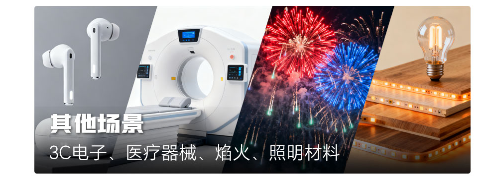 其他場景:3C電子、醫(yī)療器械、焰火、照明材料
